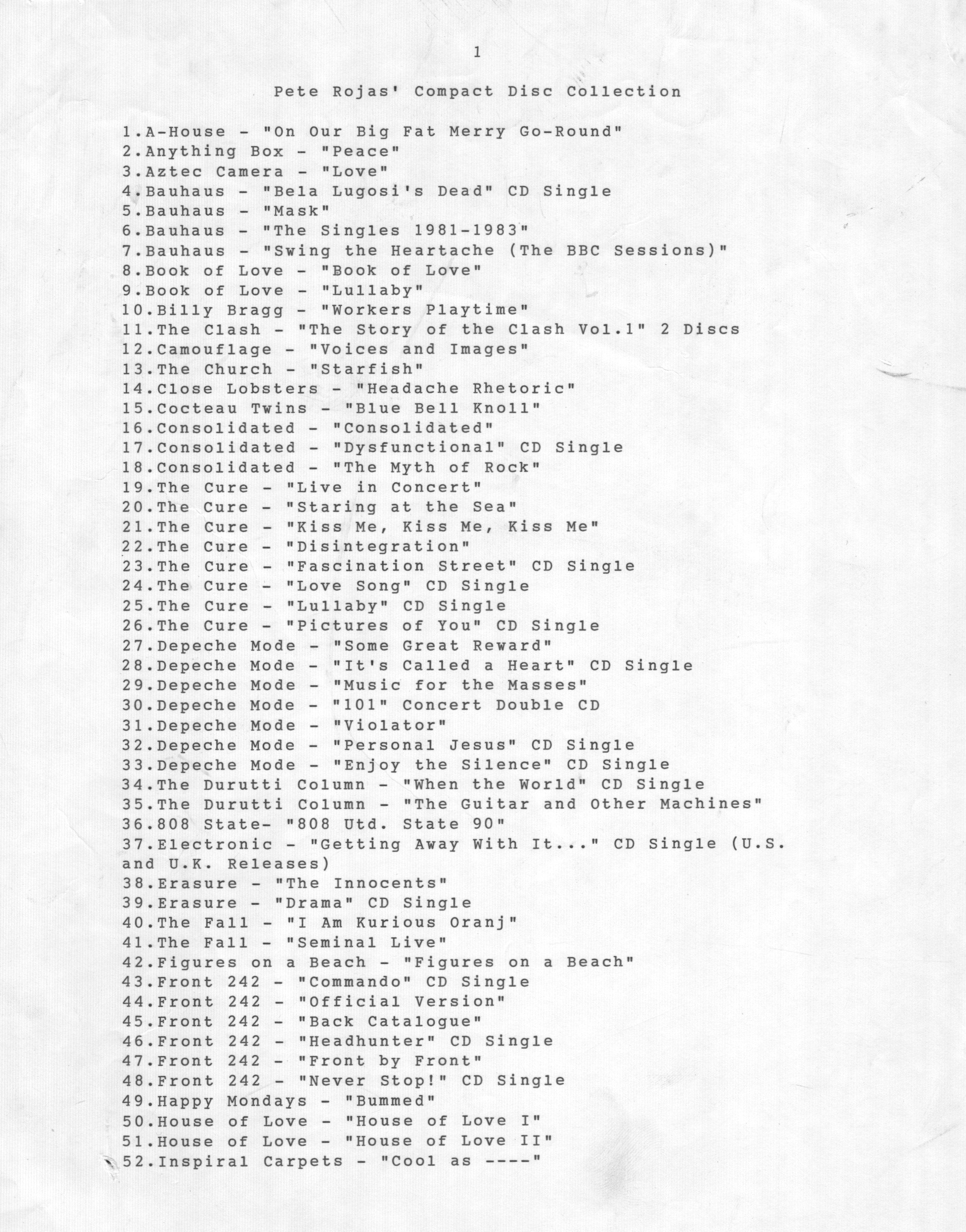 I’m not totally sure what possessed me to create this list, but sometime in 1990, when I was 15 years old, I decided to use the dedicated word processor my parents had bought a few months before to create this list of my CD collection.